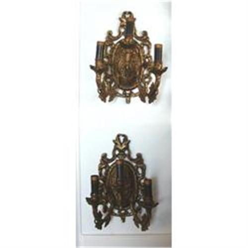 <tr><td>Title:Pair Triple Brass Sconces c.1940</td></tr>