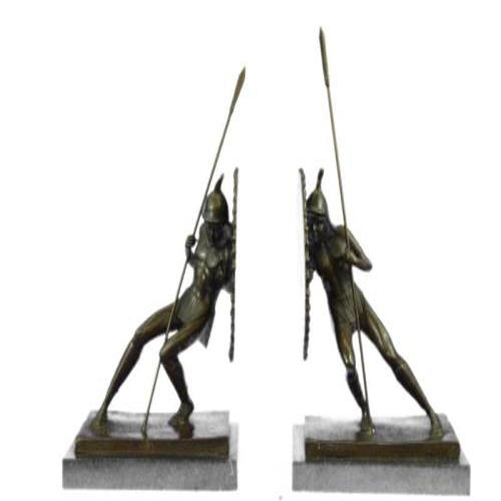 Experience the rich artistic history of the Japanese culture by adorning your bookshelf with the Japanese Warrior Bookends. Carefully cast in real Bronze, this pair of bookends is finished in beautiful brown patina and features two warriors poised to defend. The traditional look of the Warrior Bookends will be a perfect fit in your collectible or oriental theme room. This handmade brown patina sculpture was cast using the Lost Wax Method and mounted on a marble base. Each Bronze Dimensions with Marble Base each: Height 11 X Width 9 Inches. Total Weight: 10 LBS.