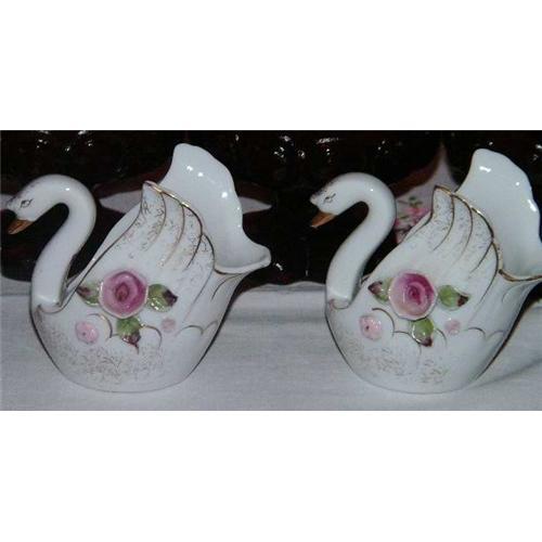 Unusual porcelain Japan swans as candle holders.</em></td>