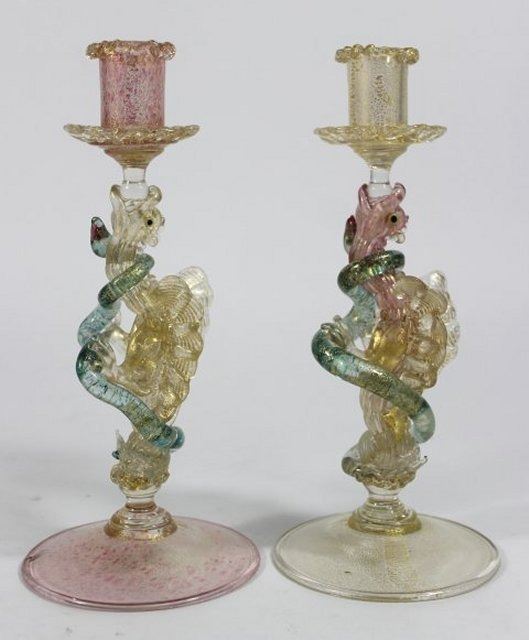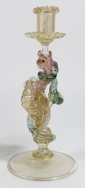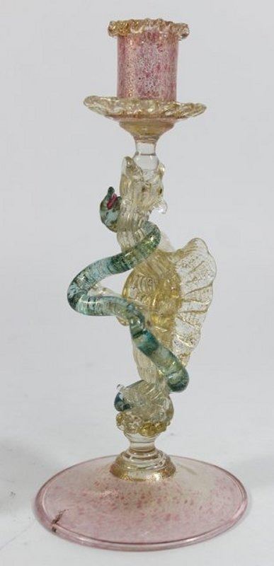 Late 19th/early 20th century. Attributed to Salviati & C. Artisti Barovier or Fratelli Toso. With dragon and snake motif. Approx. 9 1/2" H. From a NY estate. (6092) Good condition.