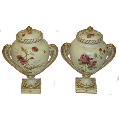 <tr><td>Title:Pair Worcester Porcelain Handled Urns</td></tr>