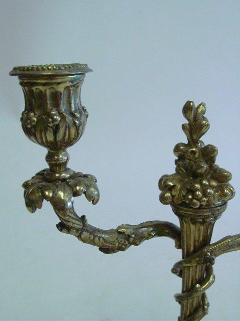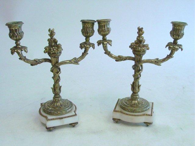 Pair bronze candelabrum 2 arm on marble bases