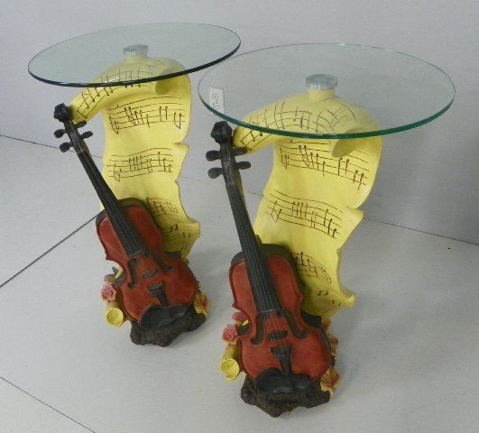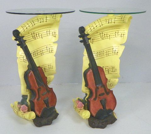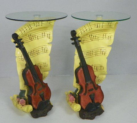 With bases depicting "Scroll of Music & Musical Instruments". Approx. 33.5" H x 19.5" Diam. Please read our terms of sale.