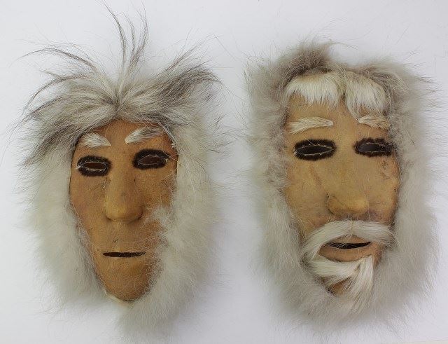 the formed faces in Caribou leather with applied fur. Nicely accomplished Inuit art showing excellent condition, 11" tall. Est. 150-300