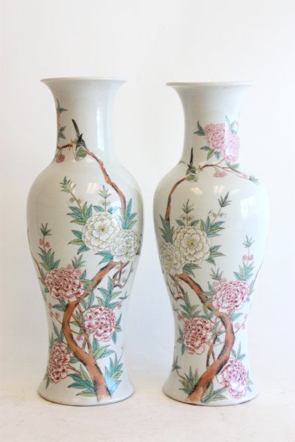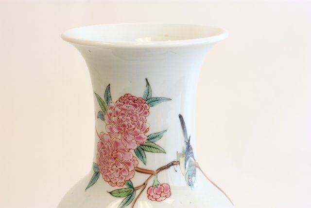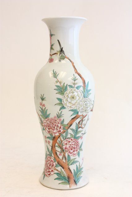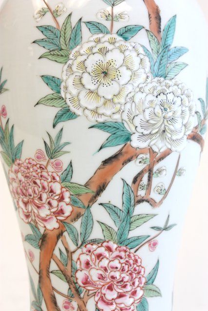 "Blossom with Birds" Yongzhing Nianzhing, bottom drilled for lamps. Approx. 18" H. Please read our terms of sale.