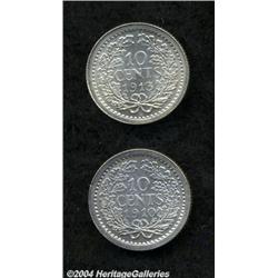 <B>Pair of 10 Cents,</B></I> KM145 1910 AU and 1913 BU. 2 coins <BR><BR><B>Important notice:</B> Heritage usually auctions material at the rate of 200-250 lots per hour. On some occasions eBay Live bid software or the Internet may not be able to keep up with the pace of the auction. We recommend placing a realistic absentee bid now as insurance to avoid disappointment. Occasionally the auctioneer may eliminate or reject an eBay Live bid, and the auctioneer may also reopen a lot after the close of the eBay live bidding (usually because we missed an audience bid), and may reject your bid even if it shows you as the winning bidder. By bidding via eBay Live, you agree that Heritage may award the lot to another bidder at its sole discretion under the circumstances described above or any other reasonable circumstances. Since eBay bids are not shown to us until we open the lot on the floor, we treat those bids just like floor bids. In most cases the floor responds before the eBay bid is presented to us, due to Internet lag time, so for consistency we have made it a policy that floor bids are always considered first over tie eBay live bids. Also please note that all Heritage lots purchased through eBay Live carry a 20% Buyer's Premium. Please make sure you read the Terms and Conditions before you bid.