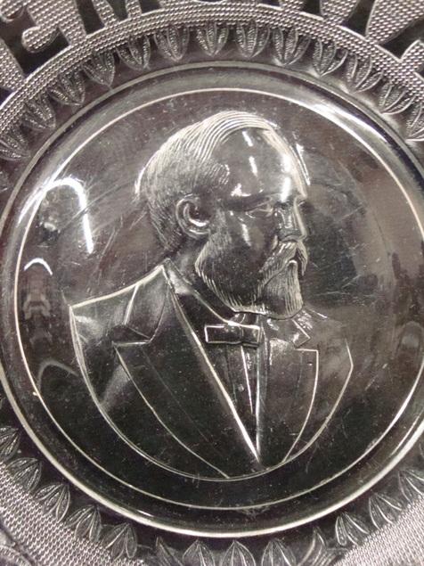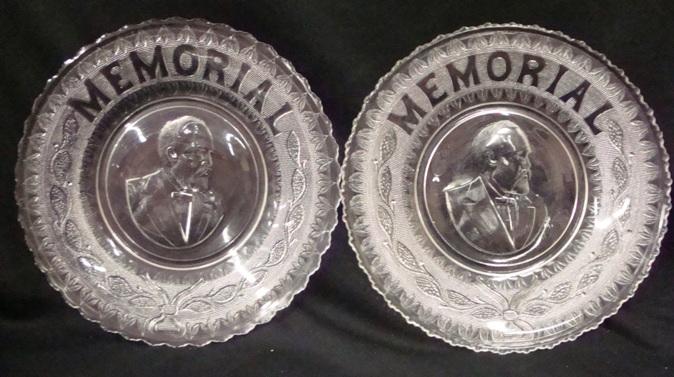 Very nice pair of James A. Garfield early American pattern glass memorial plates, One has straw mark.