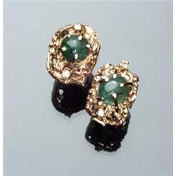 Pair of 14-Karat Yellow Gold, Emerald and Diamond Cufflinks Each set with one oval high cabochon...