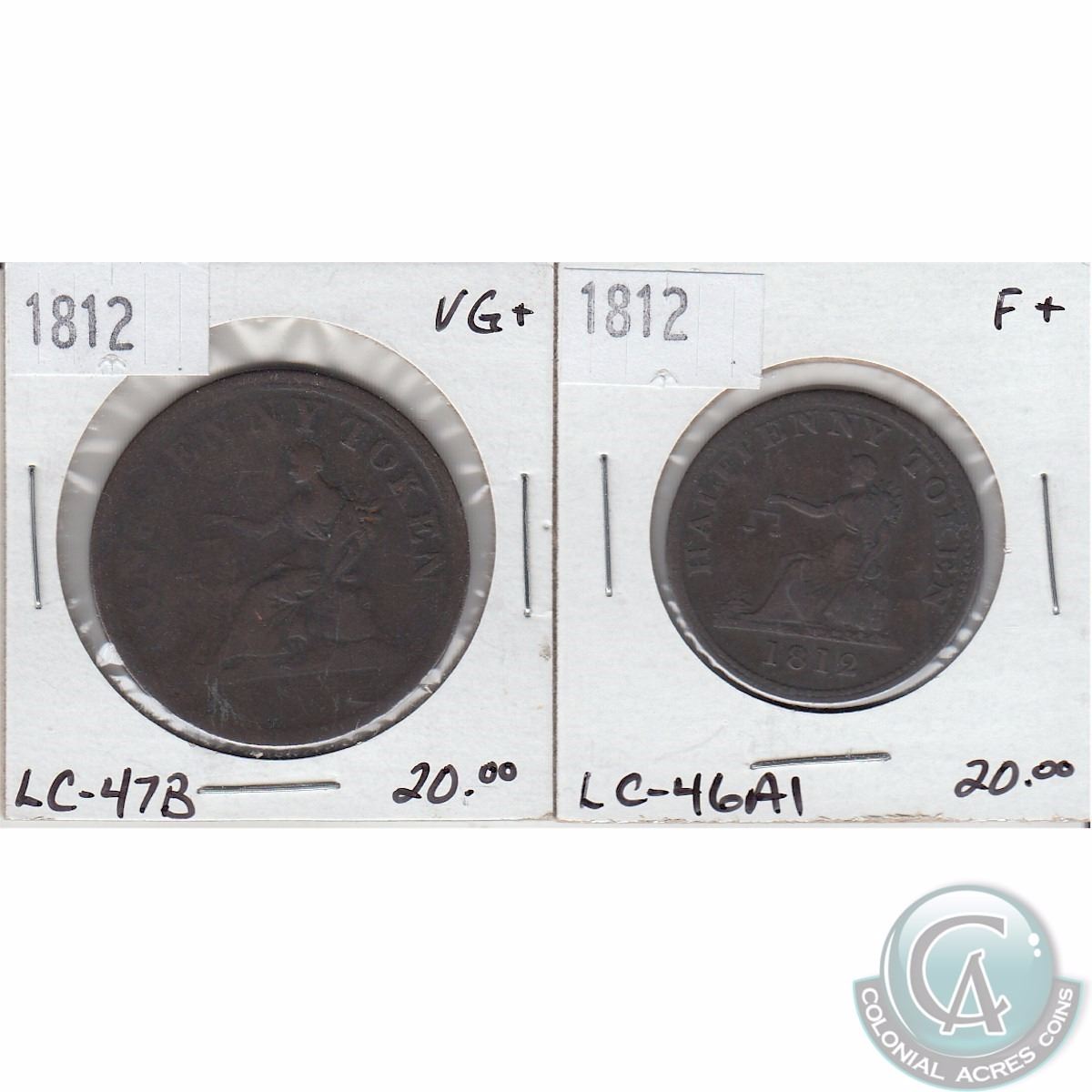 Pair of 1812 tokens. LC-46A1 and LC-47B as marked on holders. 2pcs