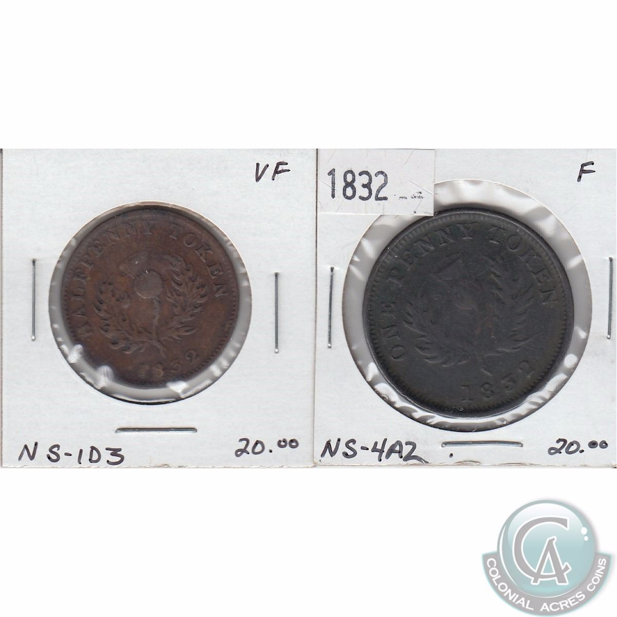 Pair of 1832 Thistle tokens Nova Scotia Half Penny and Penny. 2pcs.