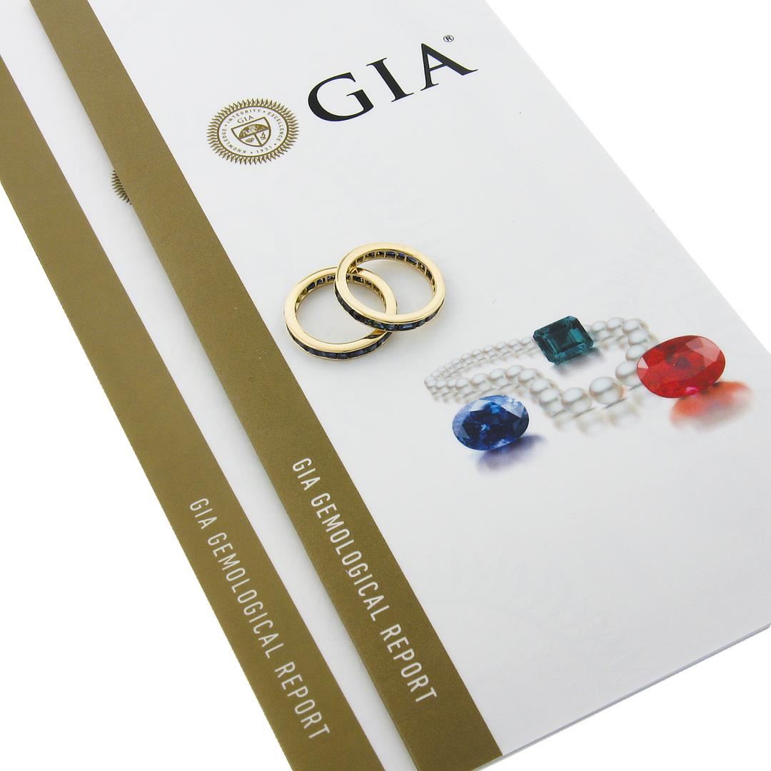a pair of solid 18k yellow gold eternity stack bands rings, with 2 GIA graded 44 round & rectangular cut natural sapphires (4.40ctw). The rings are size 6.5, weighs a total of 5.32 grams, and measures 6mm wide both rings.Comes with all original relevant certifications.