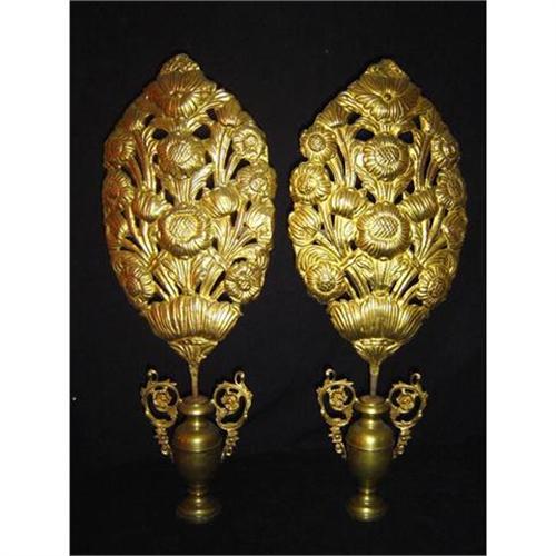 Circa. 1770. For the palace. These items were built with hand-forged brass to work as candle reflectors. The candelabras were placed behind the reflector, to create wonderful lighting effects. Check out the dimensions. These items are rather large and impressive! Total height is almost 3 feet! Highly decorative objects. Made for the aristocracy. In original brass urns which measure 10.5 inches high, 7.5 inches wide and 3 inches deep. A fabulous antique for the serious collector.