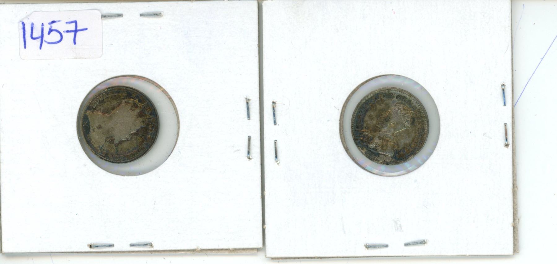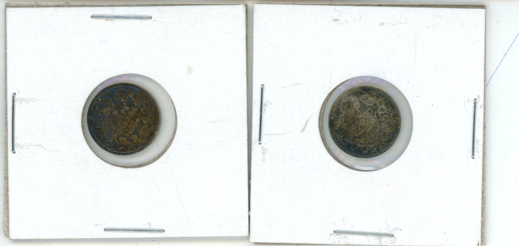 Pair of 1909 and 1919 silver 5 cent coins