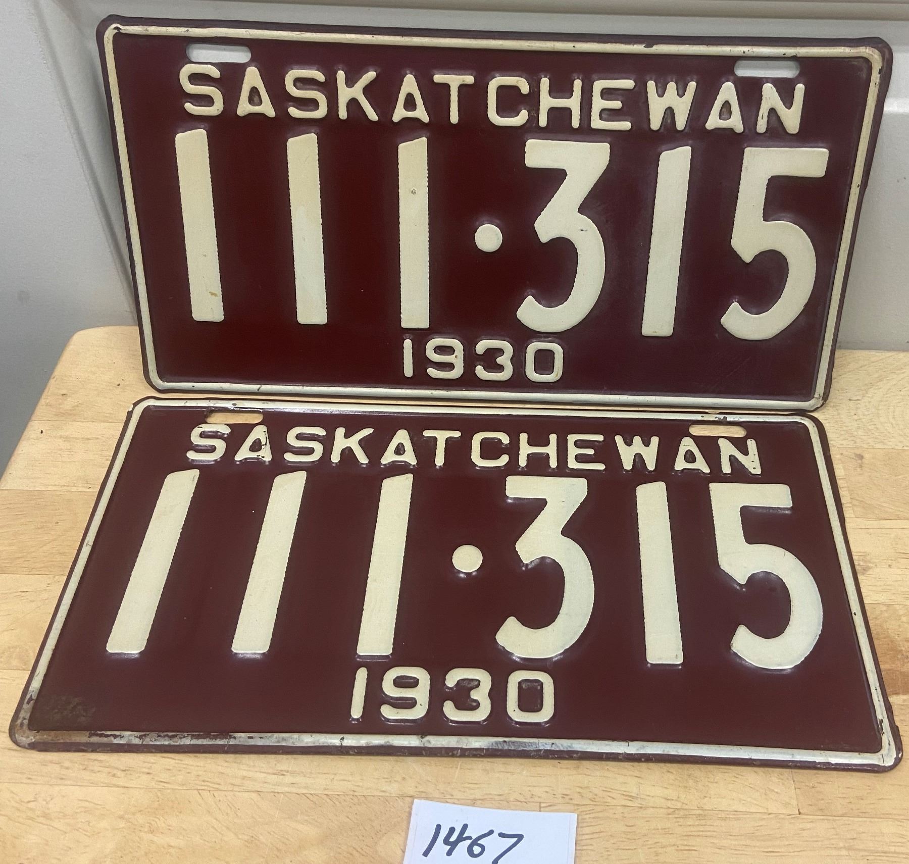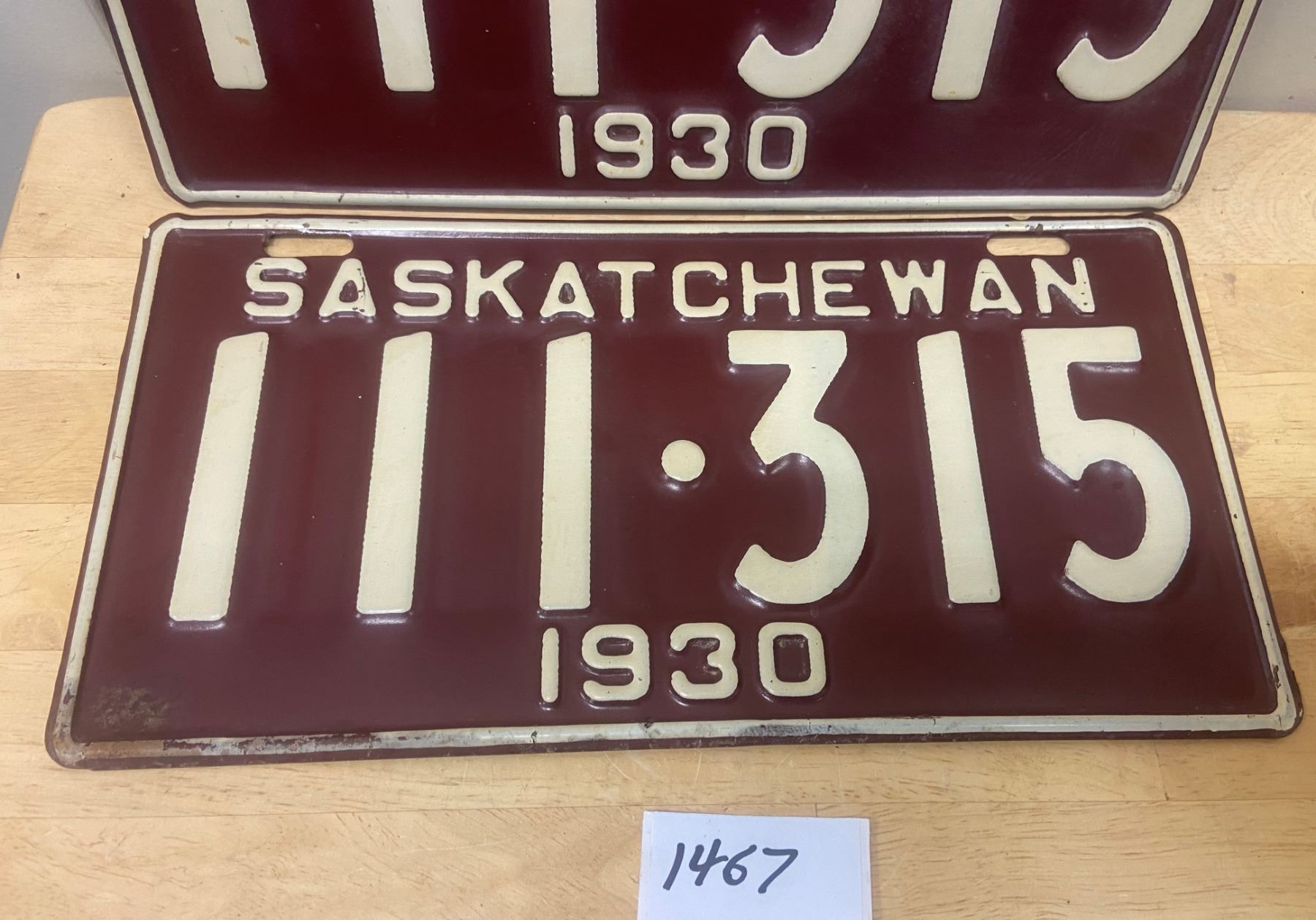 Pair of 1930 Sask licence plates - condition like - "never used"