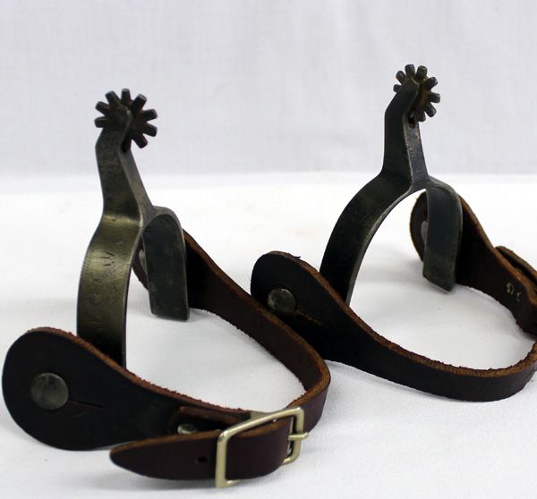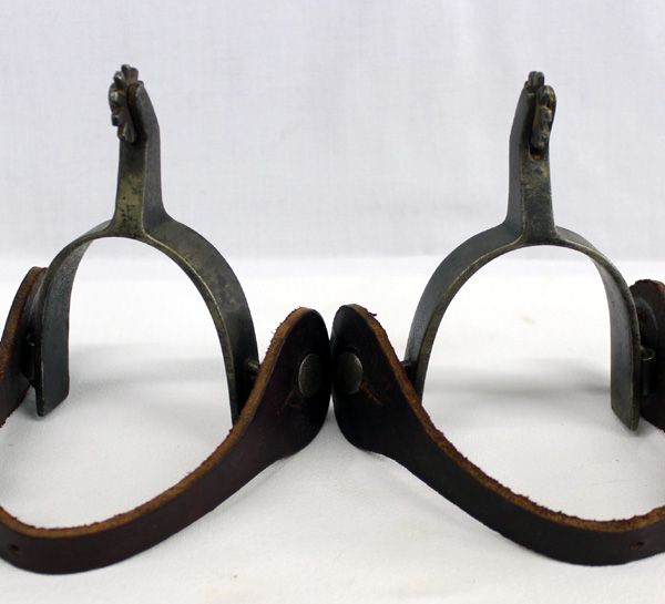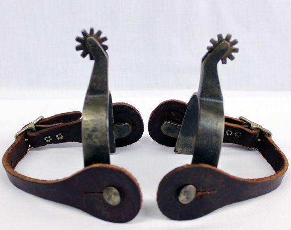 Pair of 1930''s Crocket Metal Engraved Spurs. These have ''like new'' leather. Measurements are approx.: 1'' Rowls, 1.75'' Shank and 3'' heel. Single Engraving.