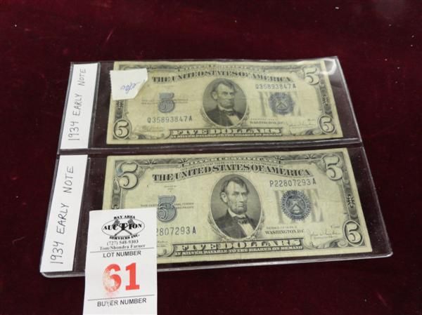 Pair of 1934 $5 Early Notes