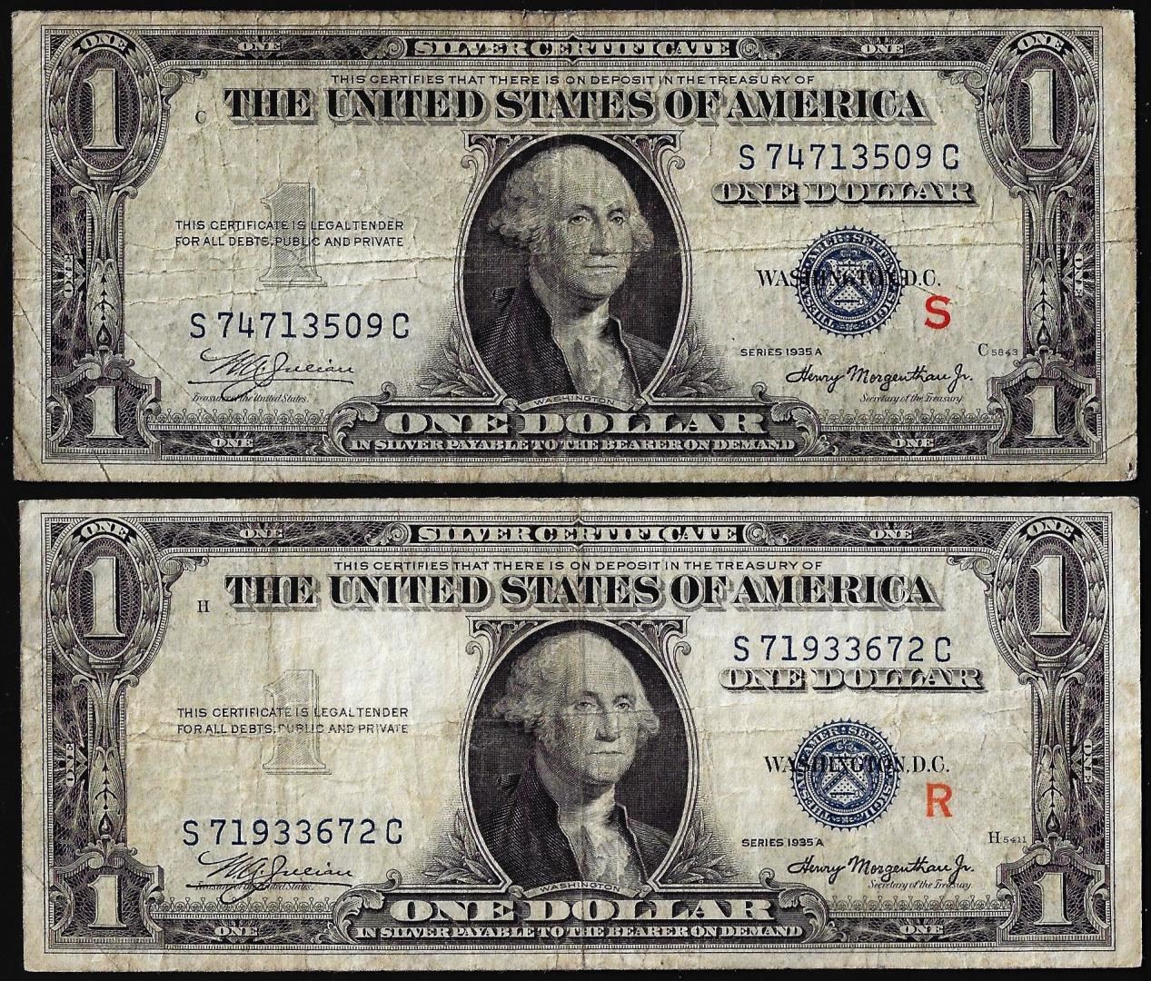 One Pair of 1935A $1 Experimental "R" & "S" Silver Certificate Notes.