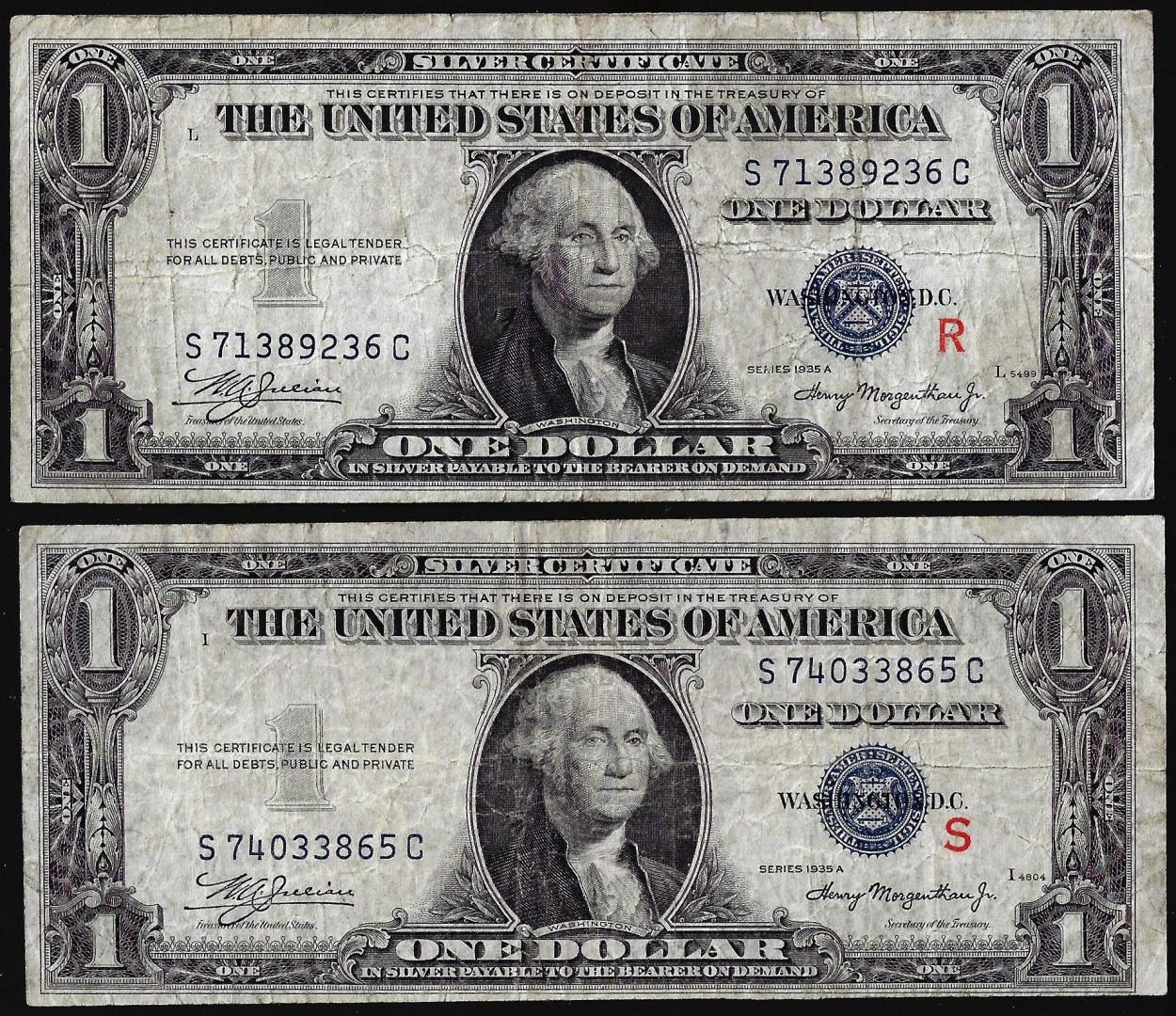 One Pair of 1935A $1 Experimental "R" & "S" Silver Certificate Notes.