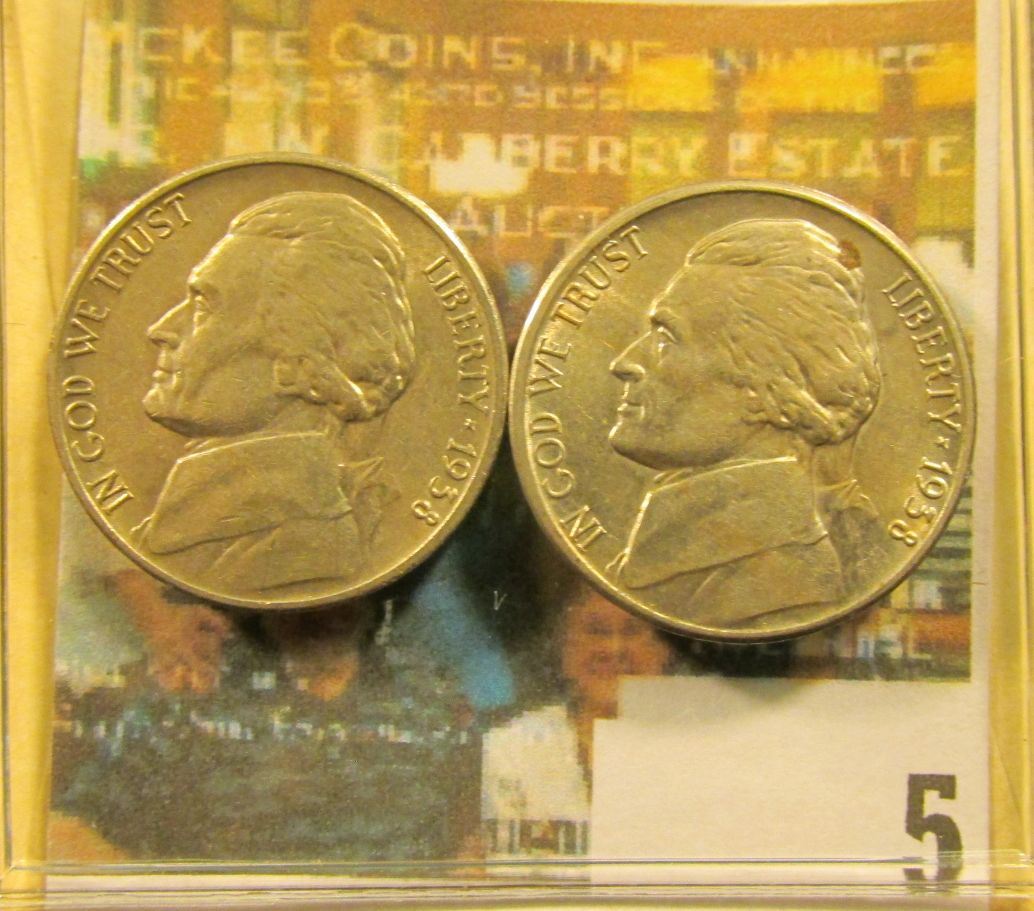 Pair of 1938 S Jefferson Nickels, both grade at least EF-AU, maybe slightly better.