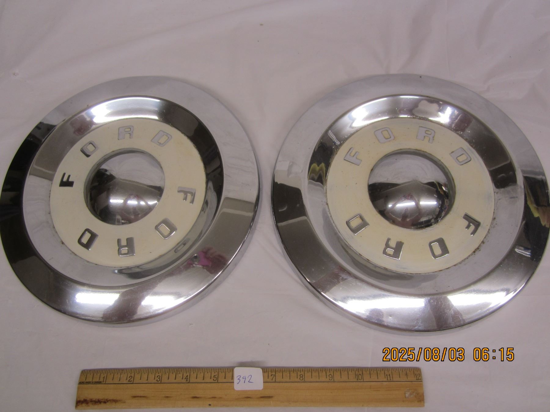Pair of 1940's -1950's Ford Hub Caps 10 and ¾ Inches Across