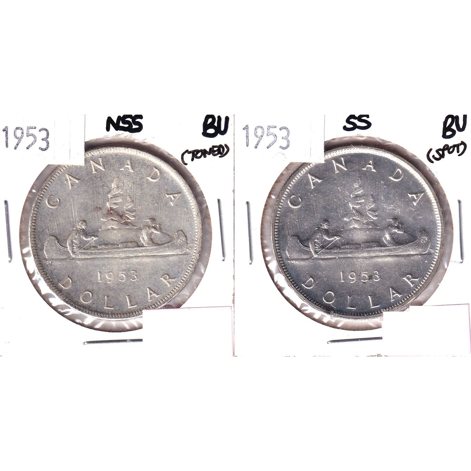 Pair of 1953 Silver dollars in BU Condition. Lot includes a SS and NSS Varieties. Coins may be lightly toned. 2Pcs.