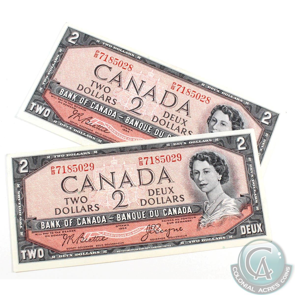 Pair of 1954 $2.00 Notes with Beattie-Coyne Signatures and Consecutive Serial Numbers. 2pcs.