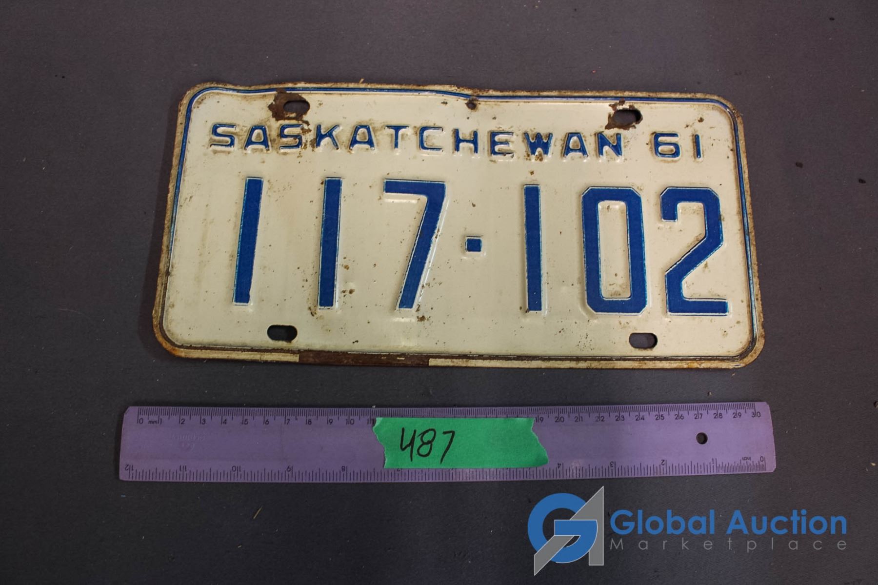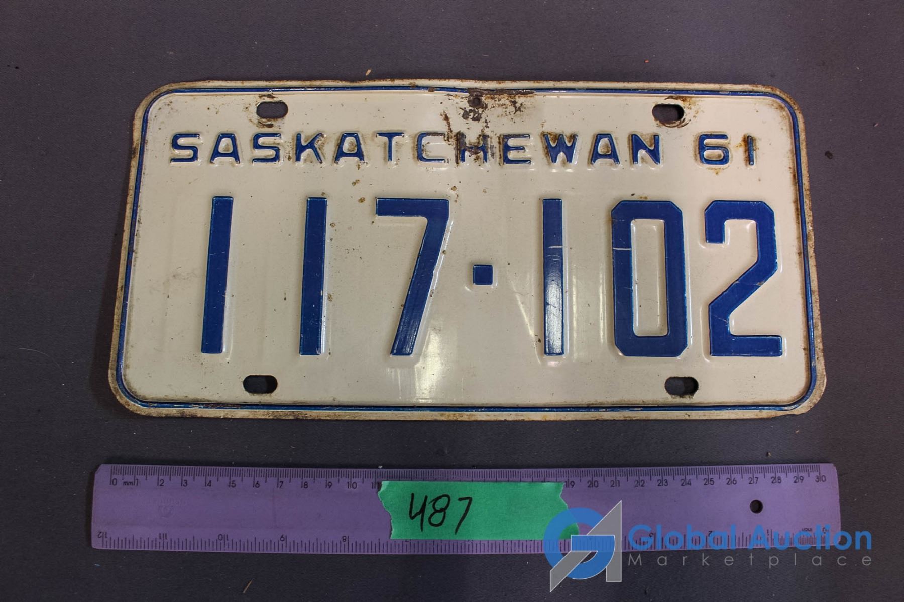 Pair of 1961 SK License Plates & Drive Safely License Plate Topper