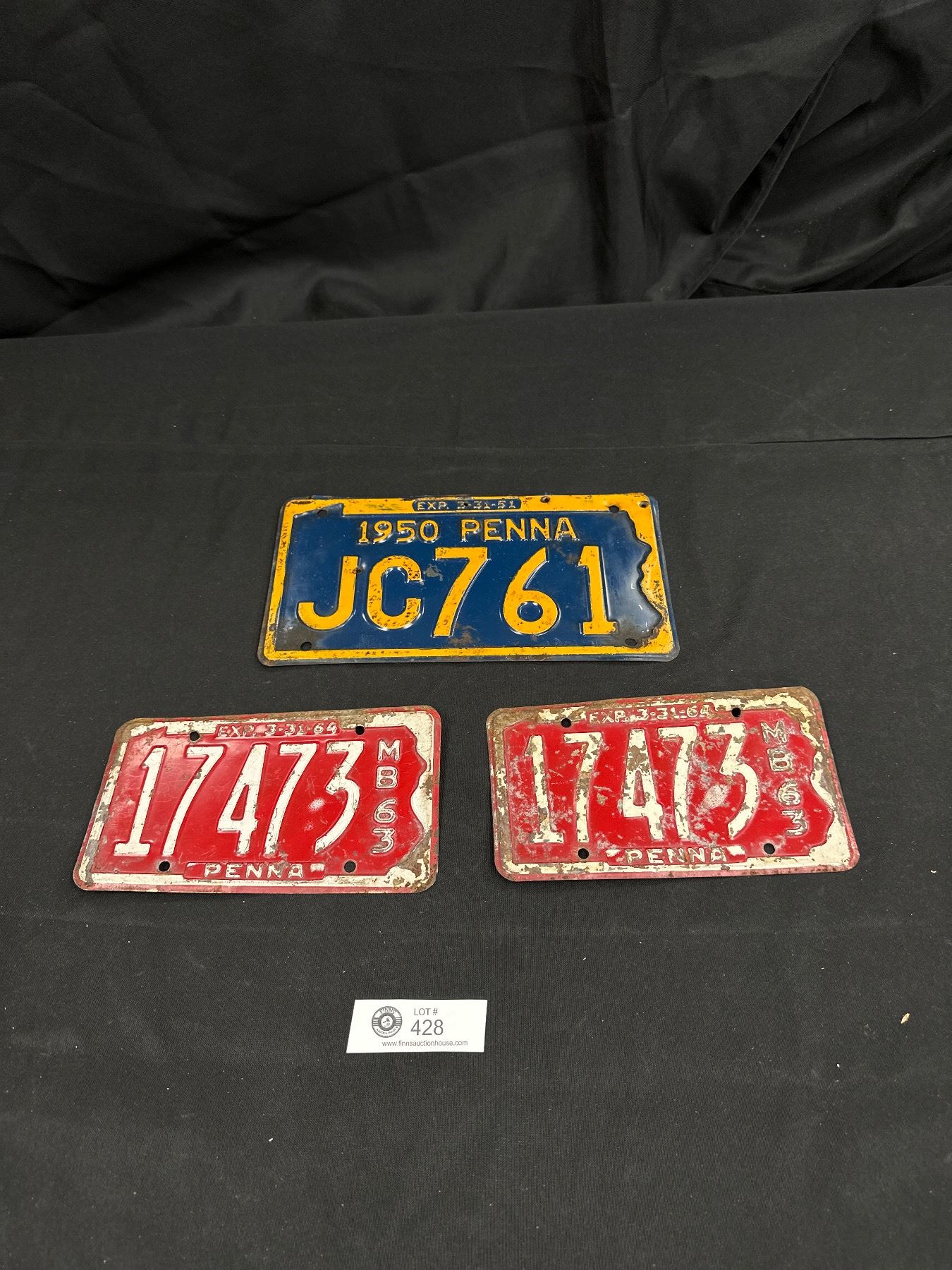 Pair of 1963 Penna Licence Plates Plus 1 1950 Penna Licence Plate