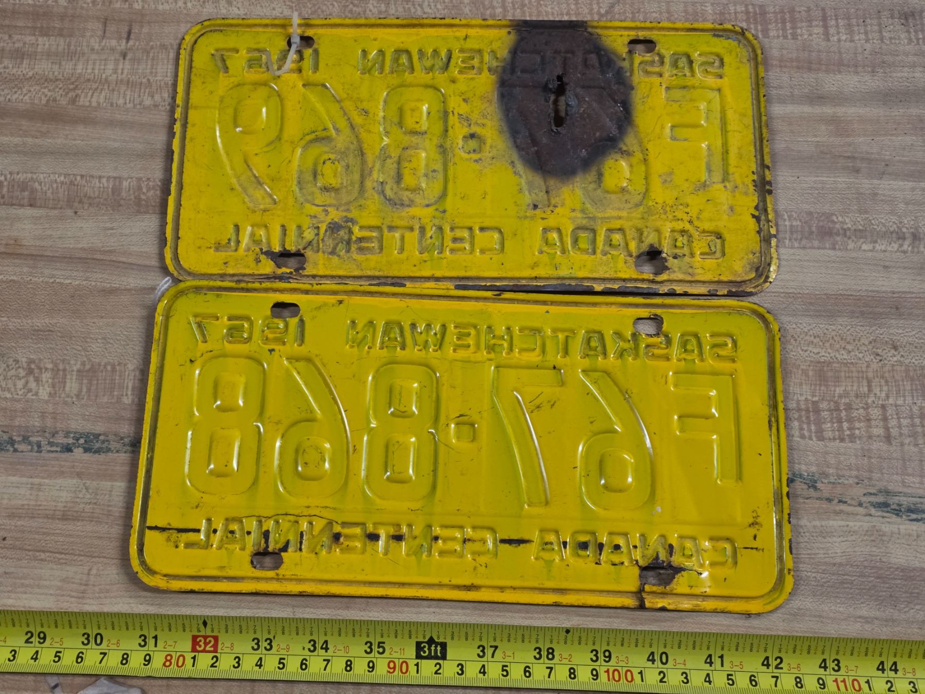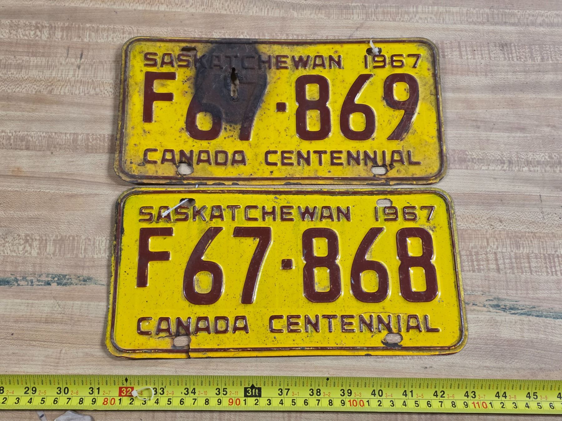 Pair of 1967 centennial Saskatchewan license plates