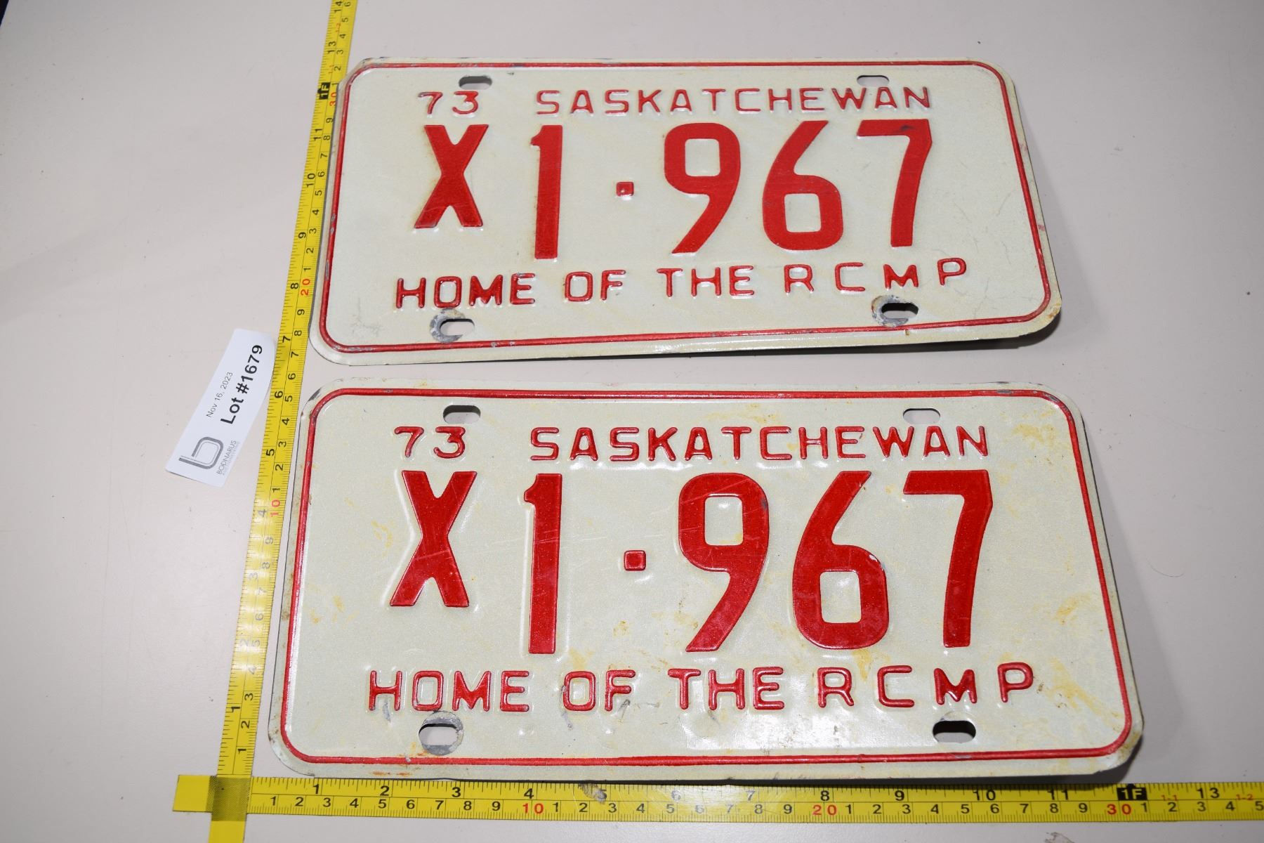 Pair of 1973 Saskatchewan 'X' License Plates - Home of the RCMP