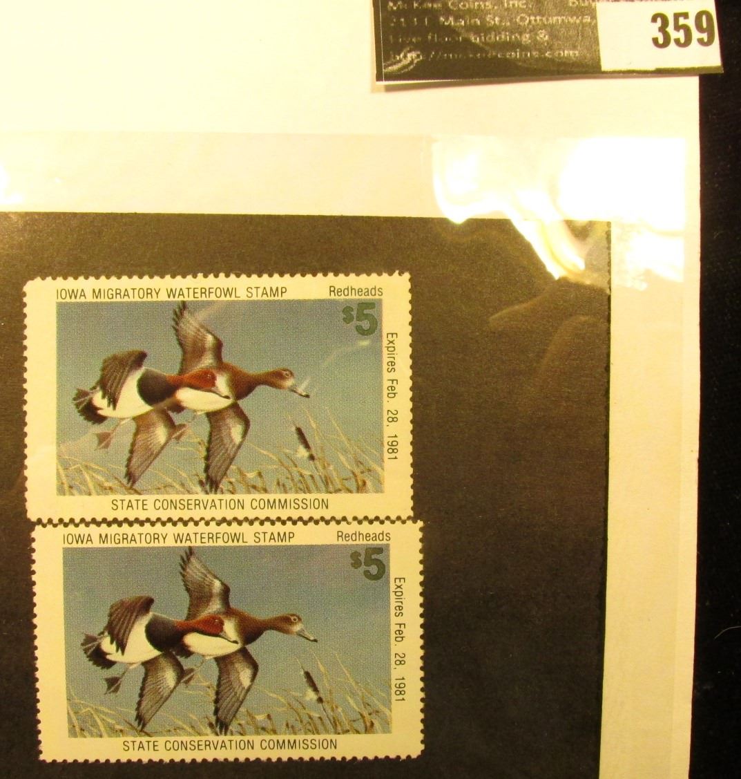 Pair of 1980 IA9 Iowa Migratory Waterfowl Stamp, VF-XF, Unsigned, NH, perfs on four sides.