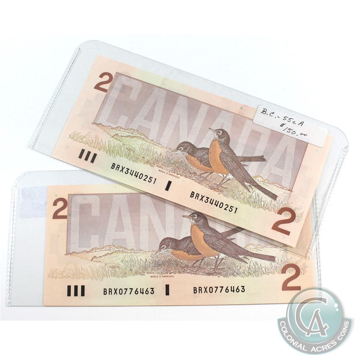 Pair of 1986 Canada Replacement $2 Notes - BC-55cA & BC-55bA. 2pcs.