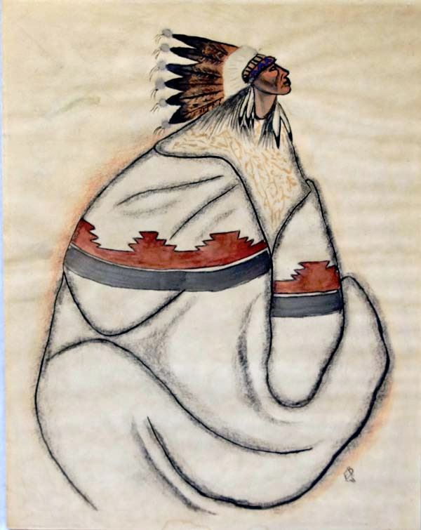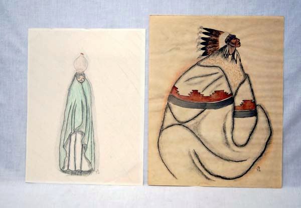 Pair of 1991 Native American Mixed Media Pictures, measures 11'' x 14'', both are signed E.B. '91