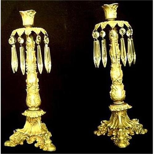 <tr><td>Title:Pair of 19th C. Bronze & Crystal Candlesticks</td></tr>