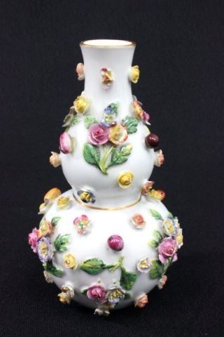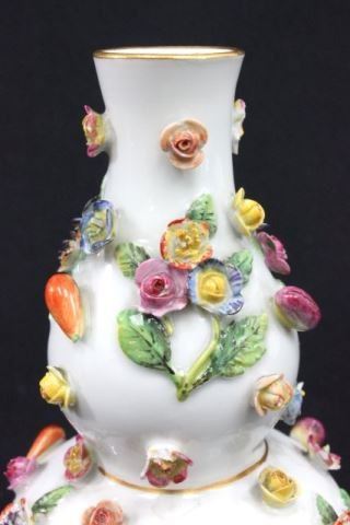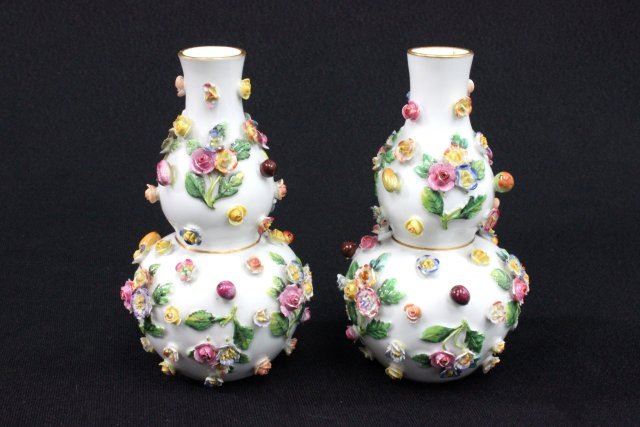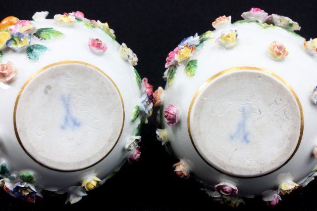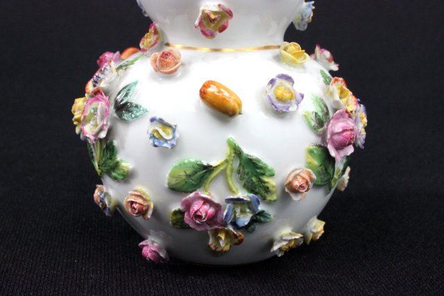 19th century. Flower encrusted. Vases approx. 4.5" H. Minor losses to flowers.