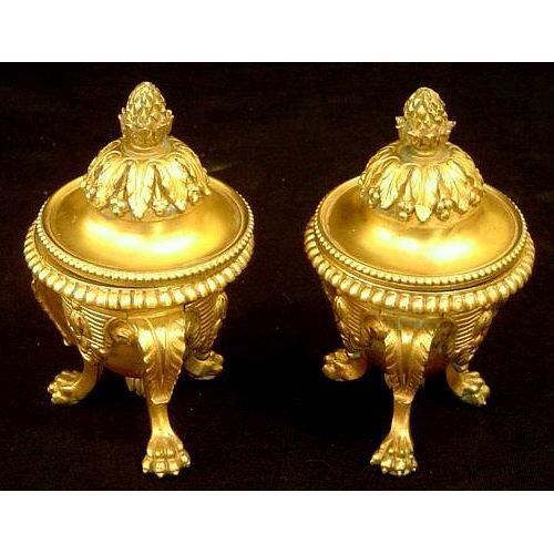 <table width="100%" border="0" cellspacing="0" cellpadding="4"><tr><td><em> </em></td></tr><tr> <td width="100%"> Pair of 19th Century Dore Bronze Inwells