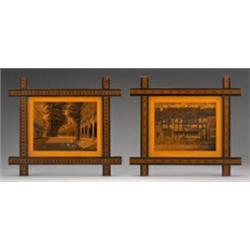 Pair of 19th Century Tunbridge ware panels, 12cms x 15.5cms within a pair of Tunbridge ware frame...