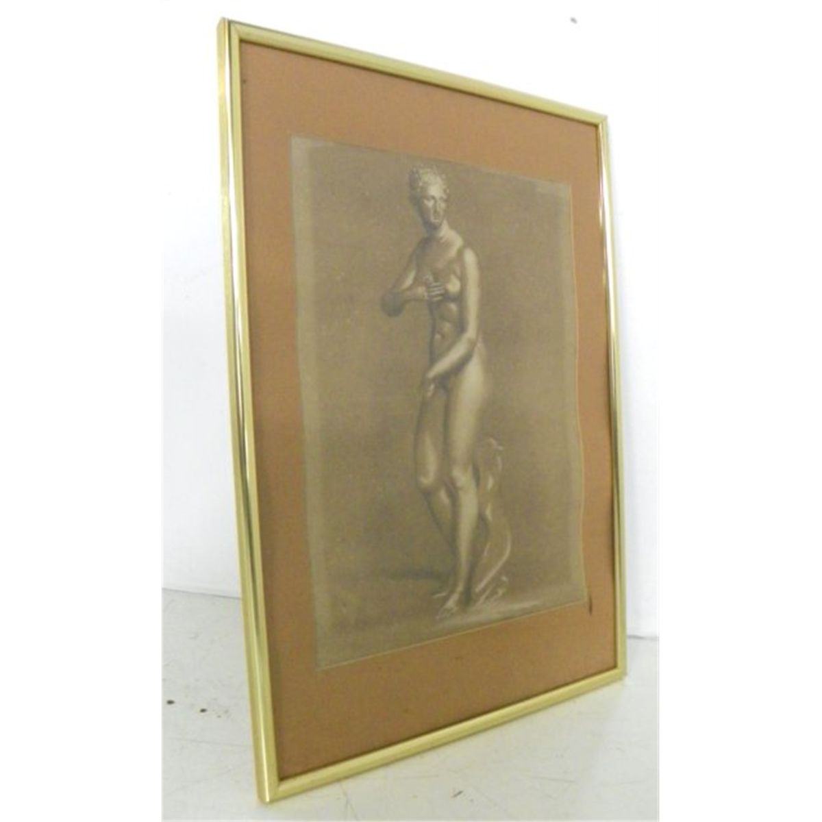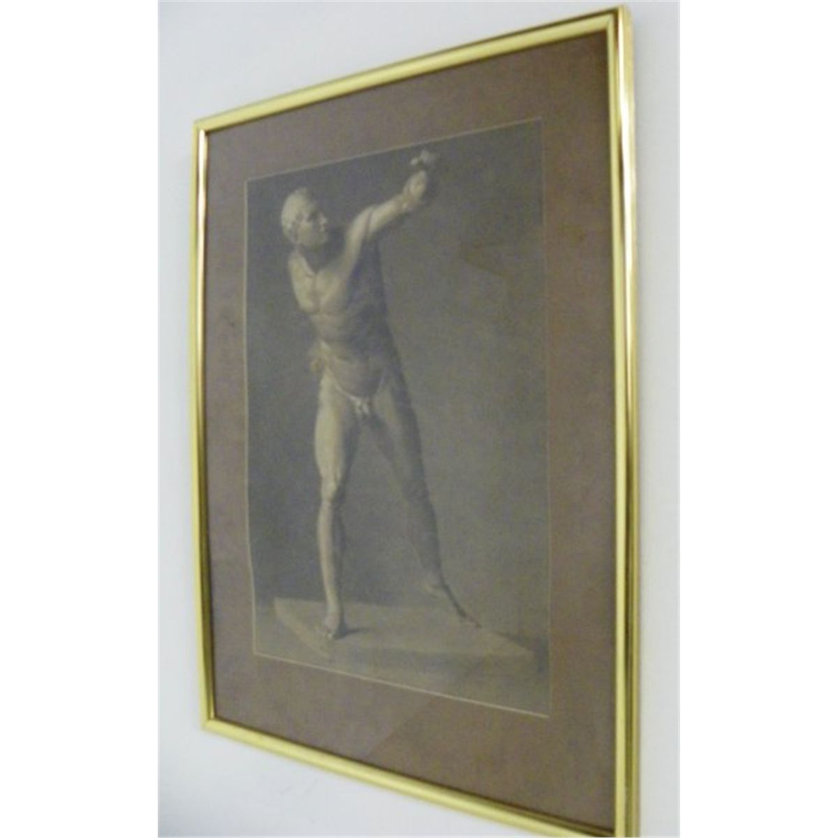 Pair of 19thc Neoclassical charcoal drawings, portrait of a nude warrior and portrait of a nude, framed 28 1/2" x 20 1/2", glass cracked on one, tears to paper at bottom on both Please read our terms of sale.