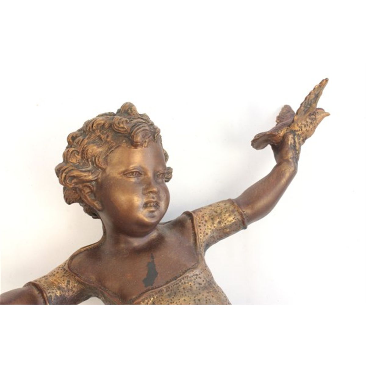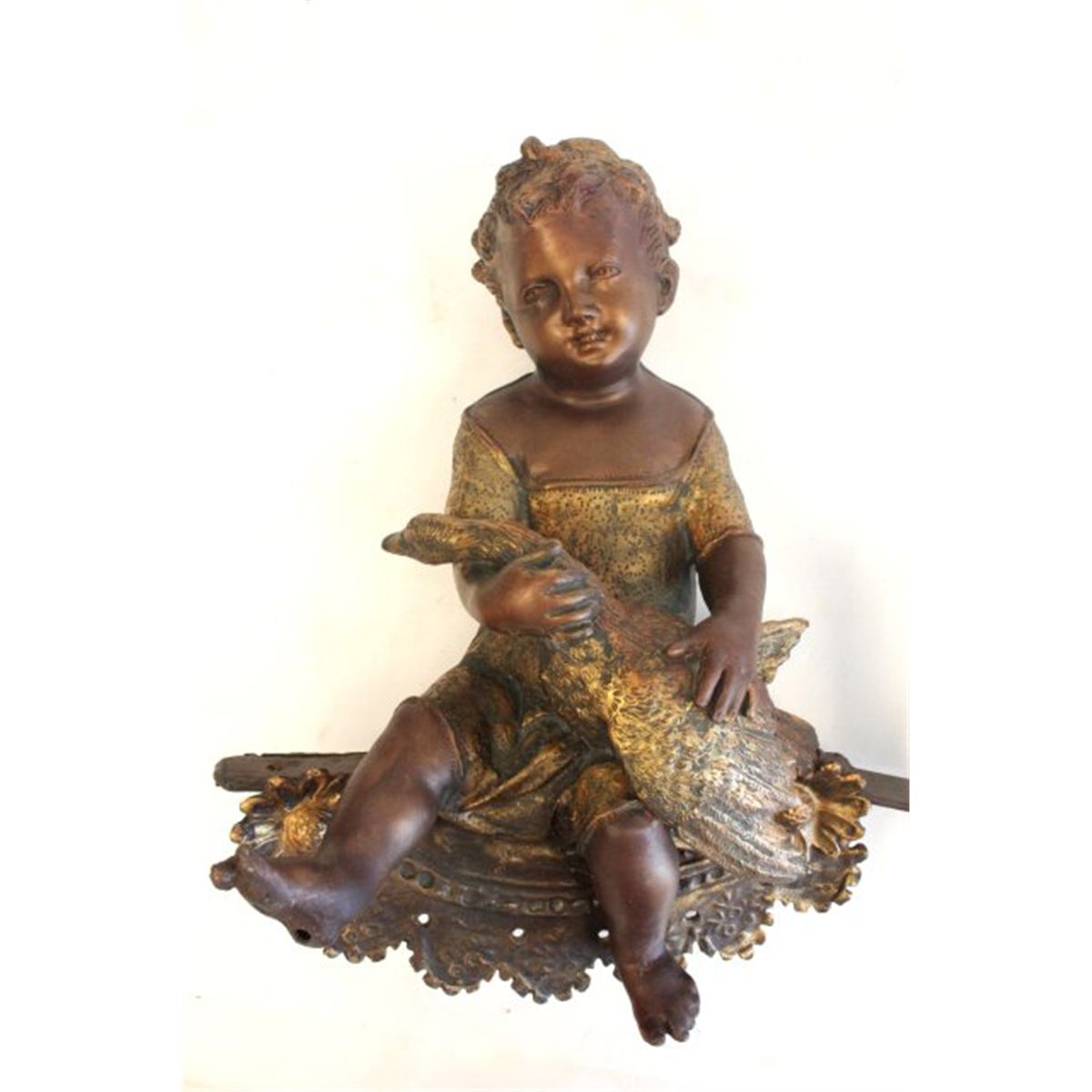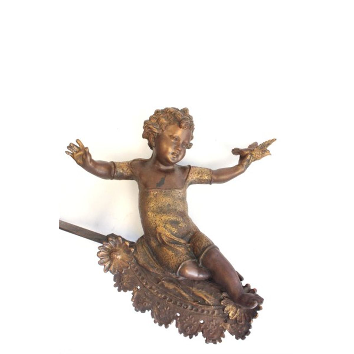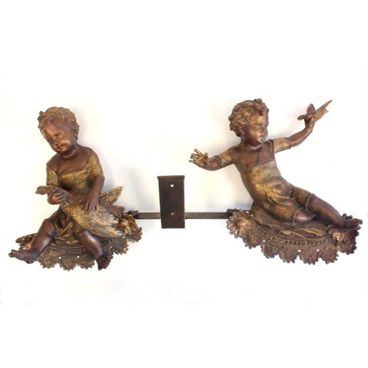 Pair of 19thc two color bronze cherubs, one holding a swan, the other a bird, were chenets, 14" x 10" Please read our terms of sale.