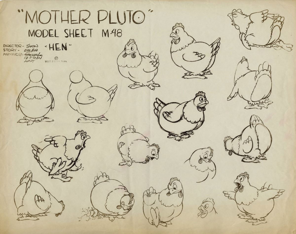 (Walt Disney Studios, 1936) Pair of (2) Studio Photostat model sheets from "Mother Pluto" and "The Country Cousin". These photostat model sheets were used by the animators as reference for the characters during production. Both measure 10"x14" and are in very good condition.