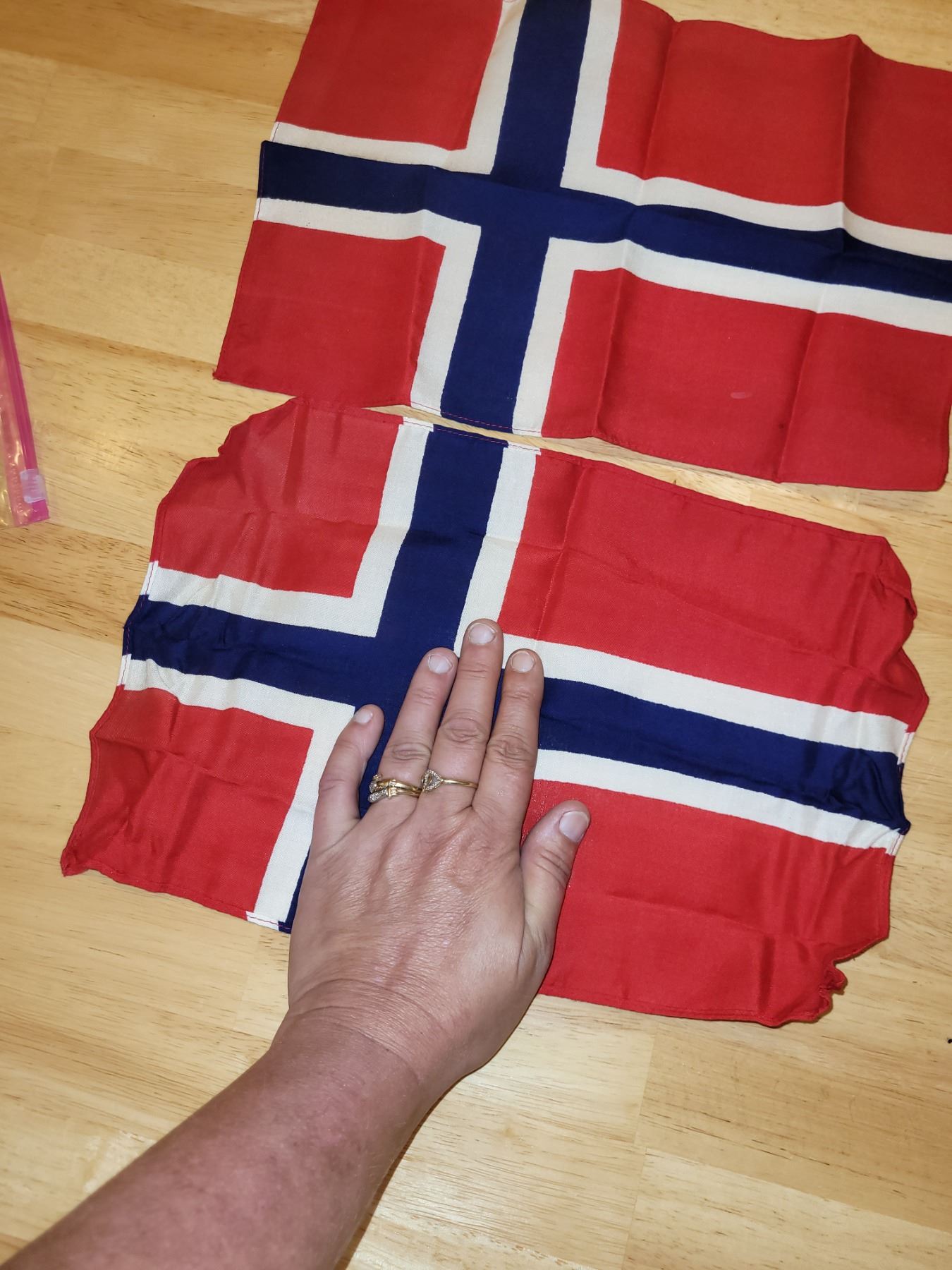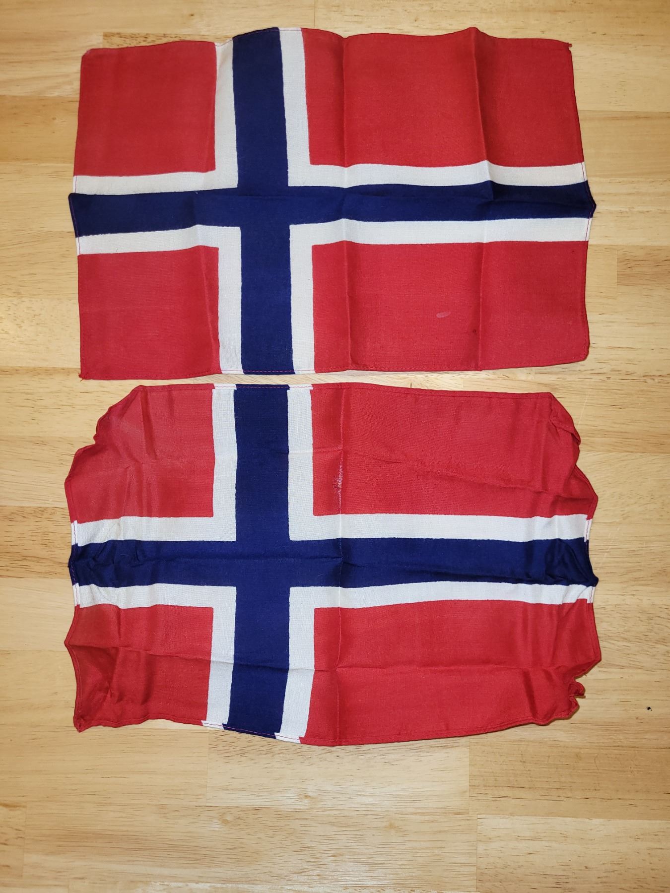 Pair of 2 Vintage maybe Antique Norway Flags - possilby linen