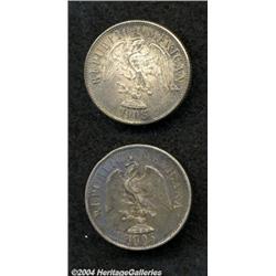 <B>Pair of 20 Centavos,</B></I> KM405 1903 CnQ AU and 1905 ZsM VF. 2 coins <BR><BR><B>Important notice:</B> Heritage usually auctions material at the rate of 200-250 lots per hour. On some occasions eBay Live bid software or the Internet may not be able to keep up with the pace of the auction. We recommend placing a realistic absentee bid now as insurance to avoid disappointment. Occasionally the auctioneer may eliminate or reject an eBay Live bid, and the auctioneer may also reopen a lot after the close of the eBay live bidding (usually because we missed an audience bid), and may reject your bid even if it shows you as the winning bidder. By bidding via eBay Live, you agree that Heritage may award the lot to another bidder at its sole discretion under the circumstances described above or any other reasonable circumstances. Since eBay bids are not shown to us until we open the lot on the floor, we treat those bids just like floor bids. In most cases the floor responds before the eBay bid is presented to us, due to Internet lag time, so for consistency we have made it a policy that floor bids are always considered first over tie eBay live bids. Also please note that all Heritage lots purchased through eBay Live carry a 20% Buyer's Premium. Please make sure you read the Terms and Conditions before you bid.