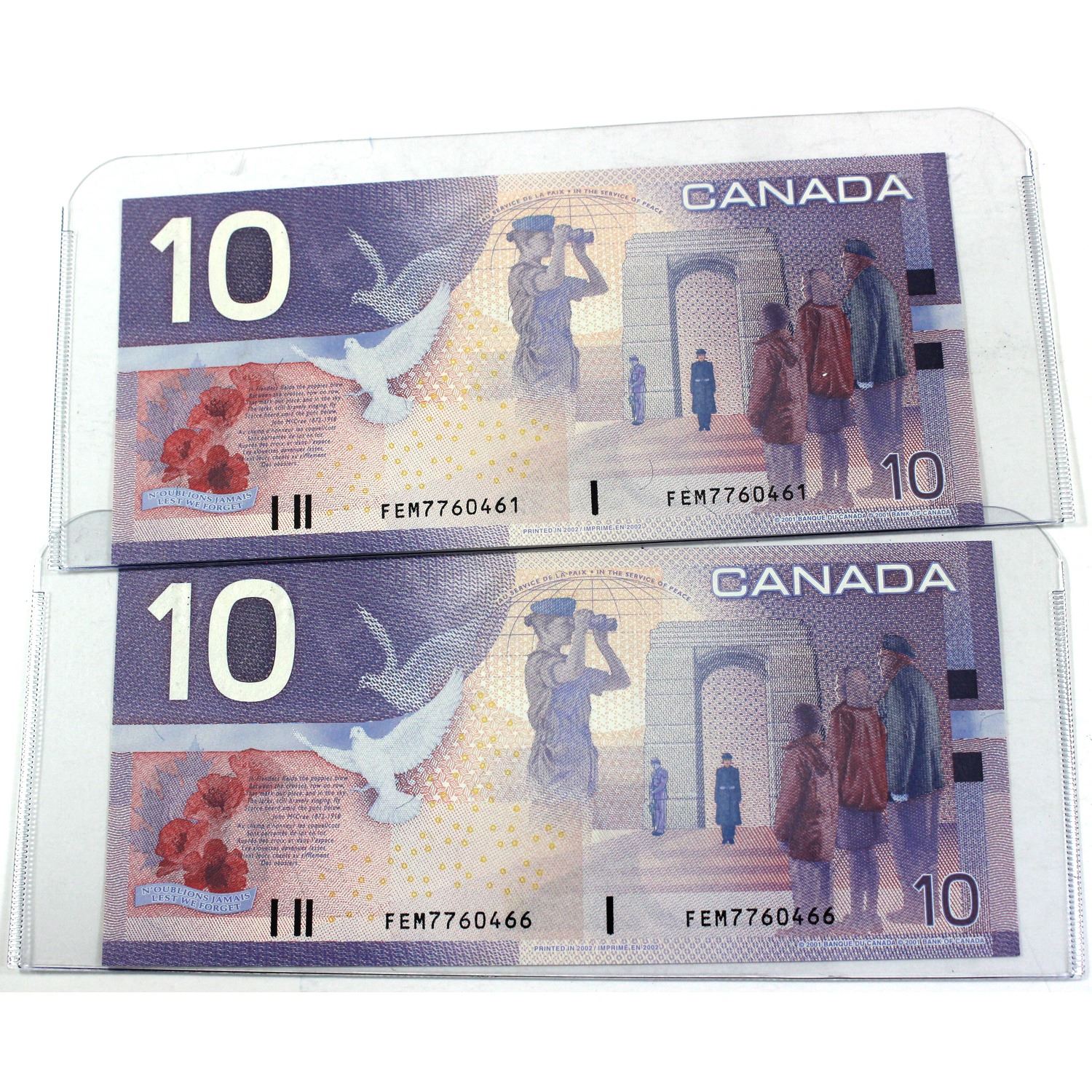 Pair of 2001 Canada $10 BC-63b FEM Knight-Dodge notes in UNC condition. 2pcs