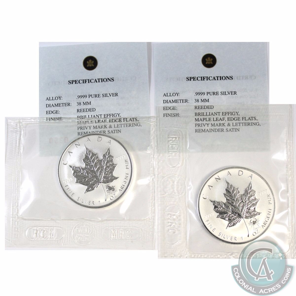 Pair of 2004 Canada $5 Cancer & Capricorn Privy 1oz .9999 Fine Silver Maple Leaf (TAX Exempt). Both coins come sealed in the original pliofilm with certificates.* Limited Mintage of 5000 coins Worldwide* - 2pcs
