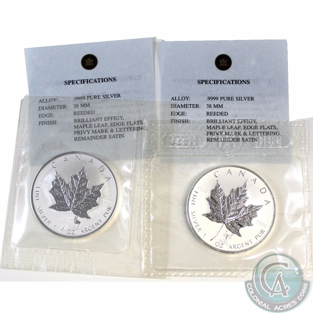Pair of 2004 Canada $5 Scorpio & Aries Privy 1oz .9999 Fine Silver Maple Leafs (TAX Exempt). Both coins come sealed in the original pliofilm with certificates.* Limited Mintage of 5000 coins Worldwide* - 2pcs