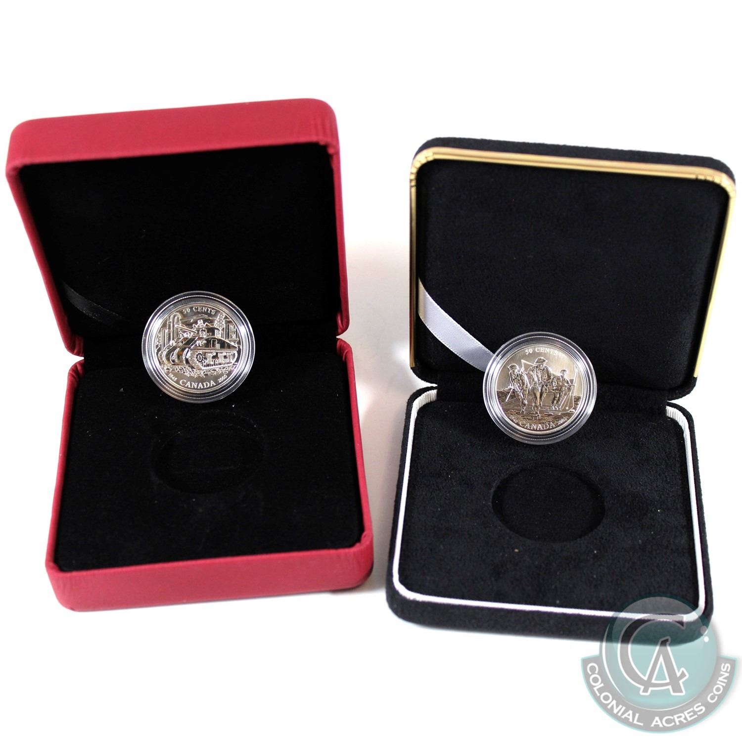 Pair of 2005 Canada 50-cent Sterling Silver Coins from the WWII 6-coin Battle of Britain Set. You will receive the Conquest of Sicily and the Raid on Dieppe. Coins come encapsulated in RCM display boxes. 2pcs