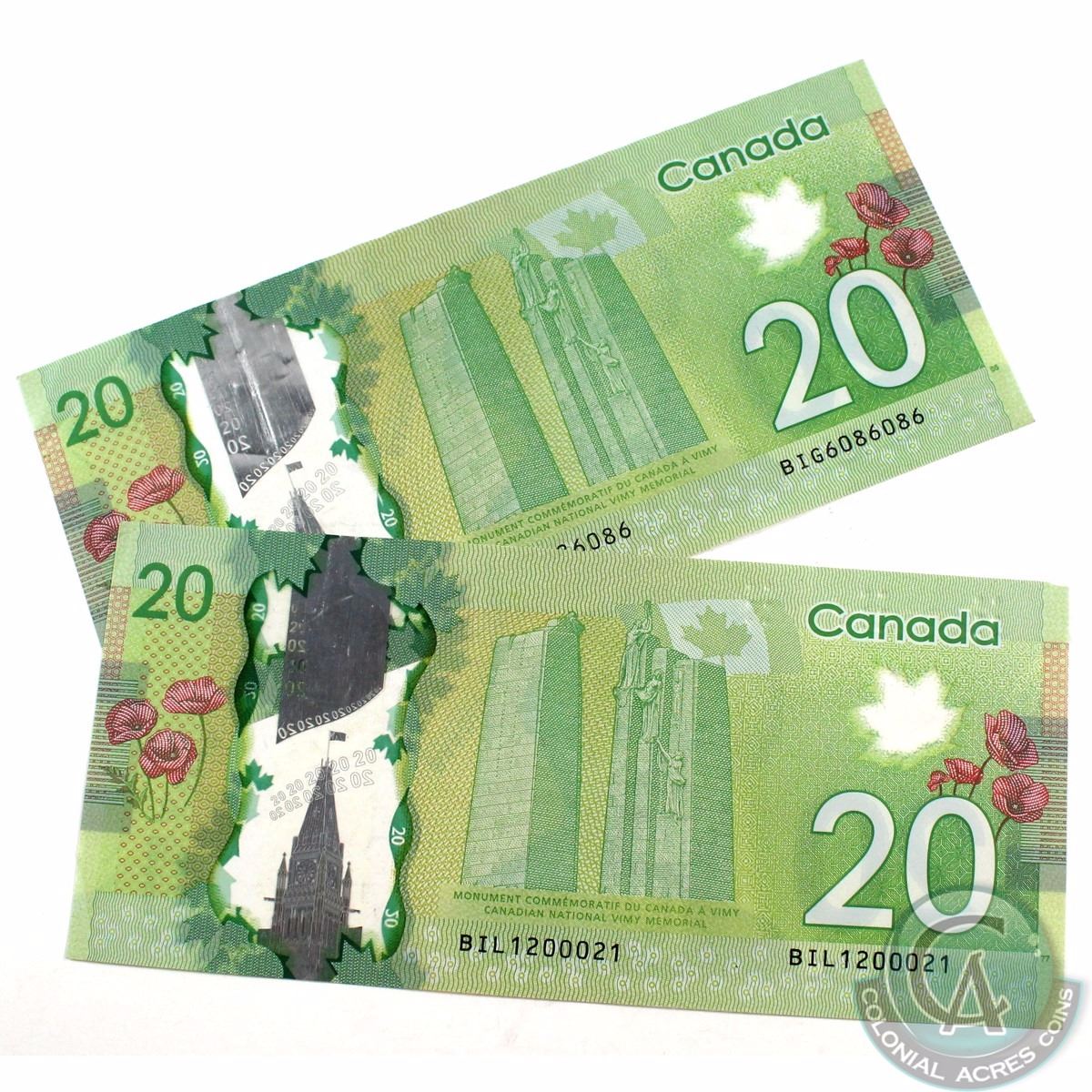 Pair of 2012 $20.00 notes with Special Serial Numbers. One is a RADAR and one is a REPEATER. 2 pcs.