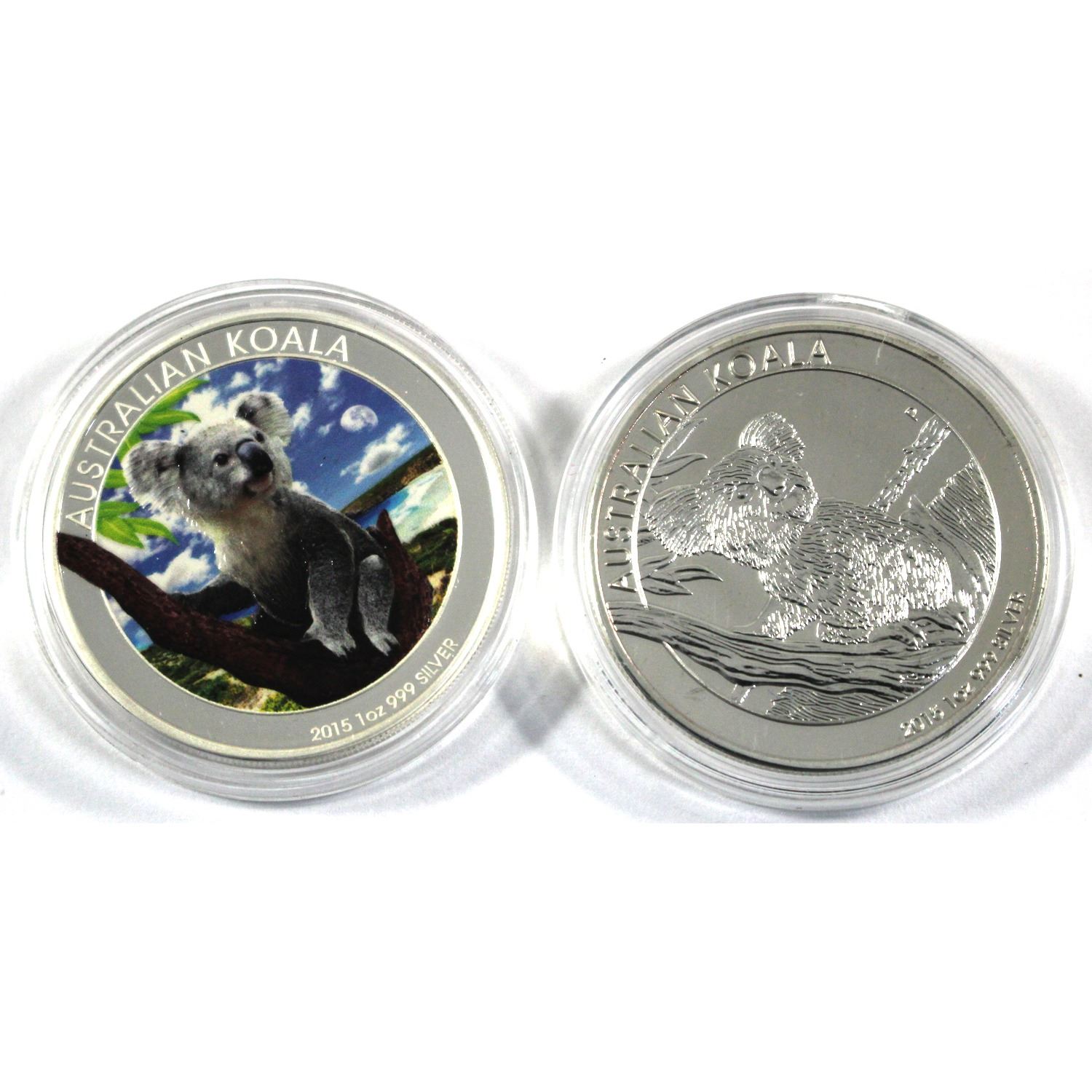 Pair of 2015 Australia Koala Coloured and non-coloured 1oz .999 fine silver coins. 2pcs (TAX Exempt)