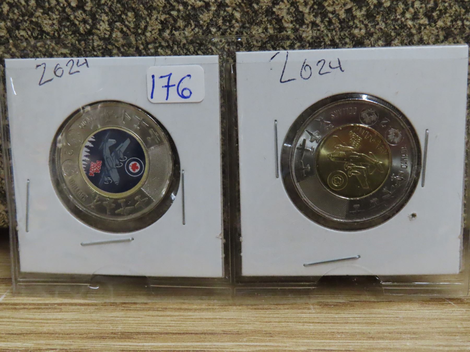 Pair of 2024 100th anniversary of the royal Canadian Airforce toonie ( coloured/ non-coloured)