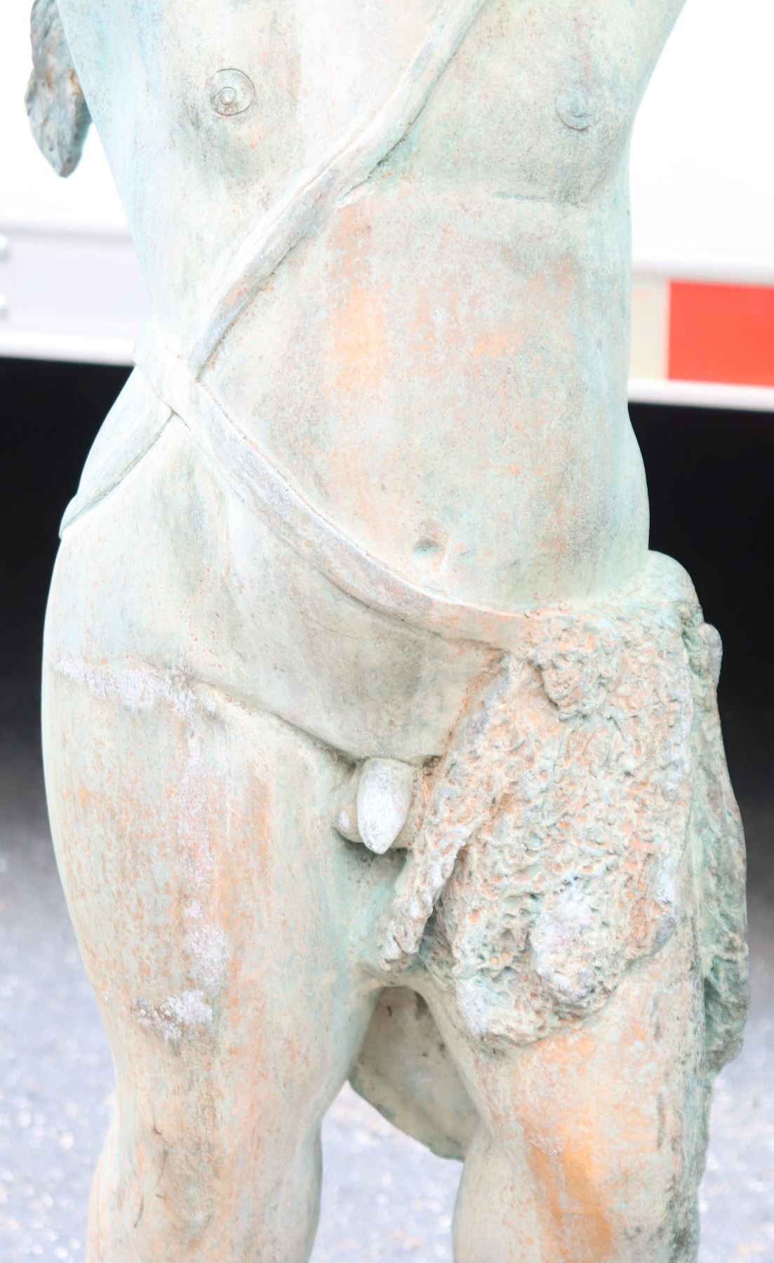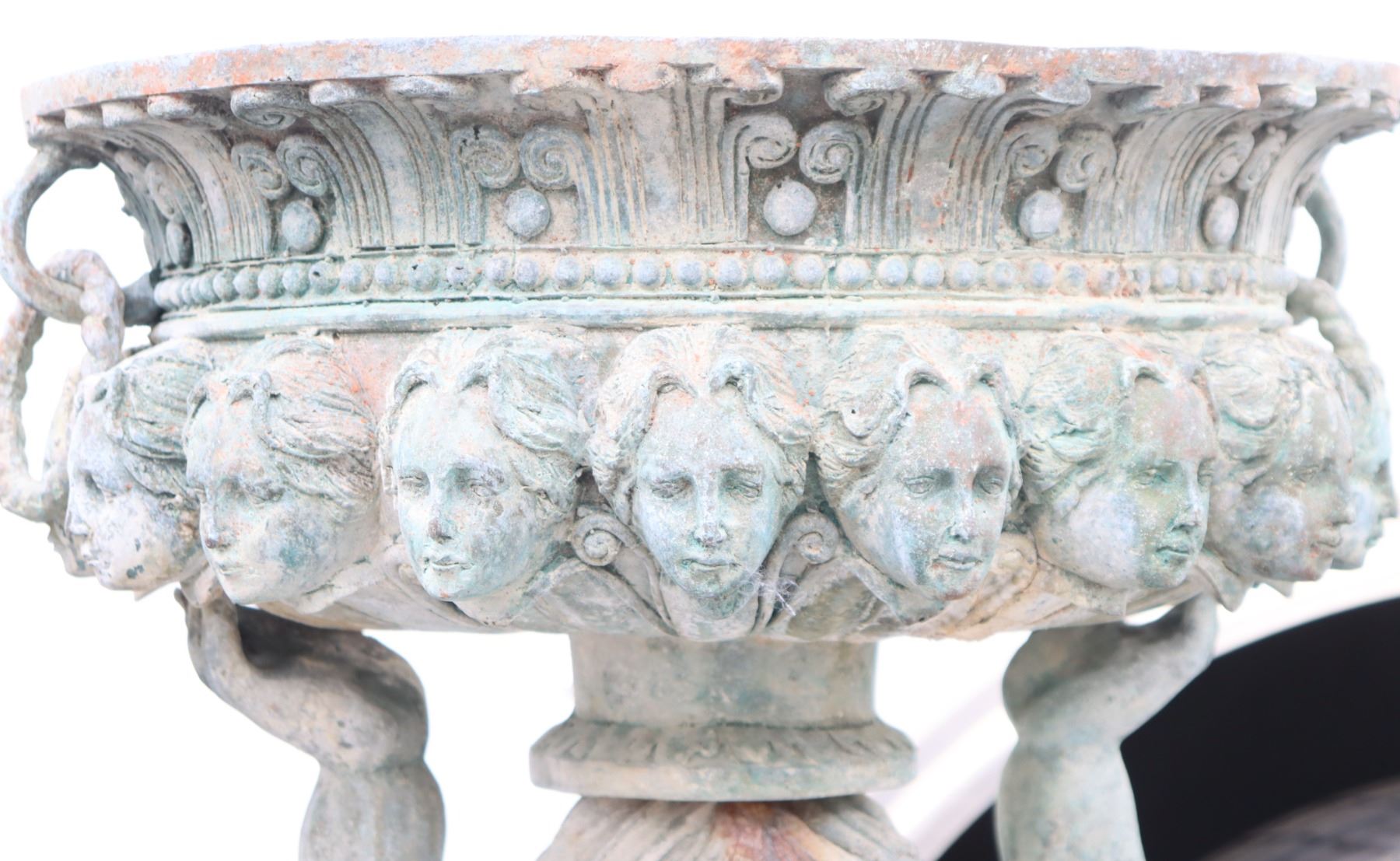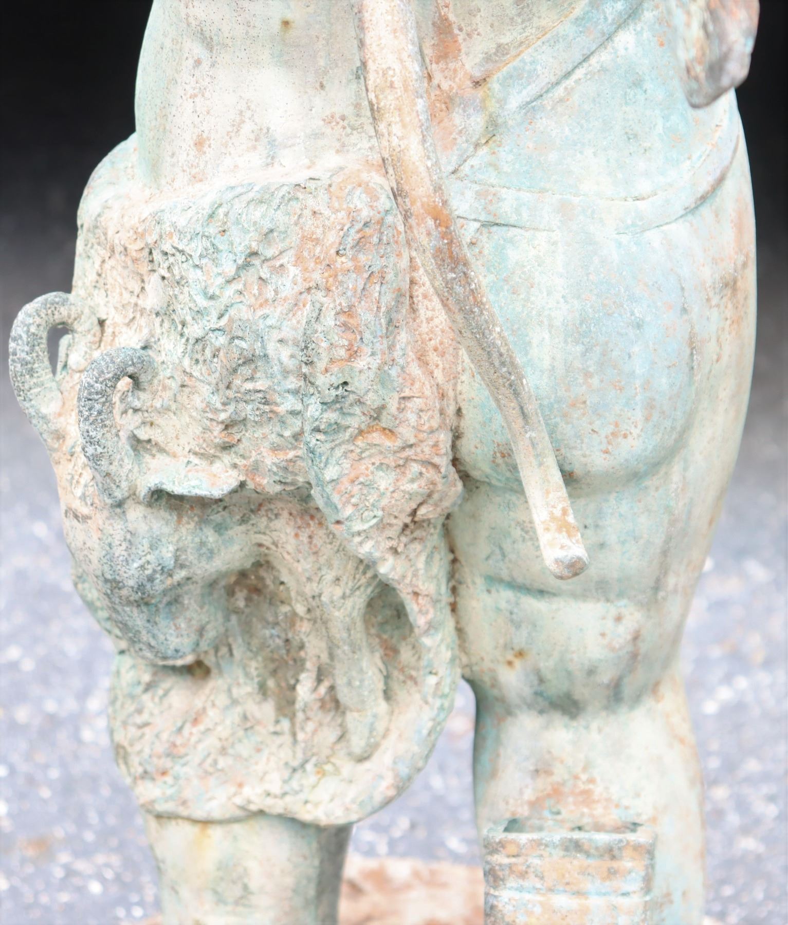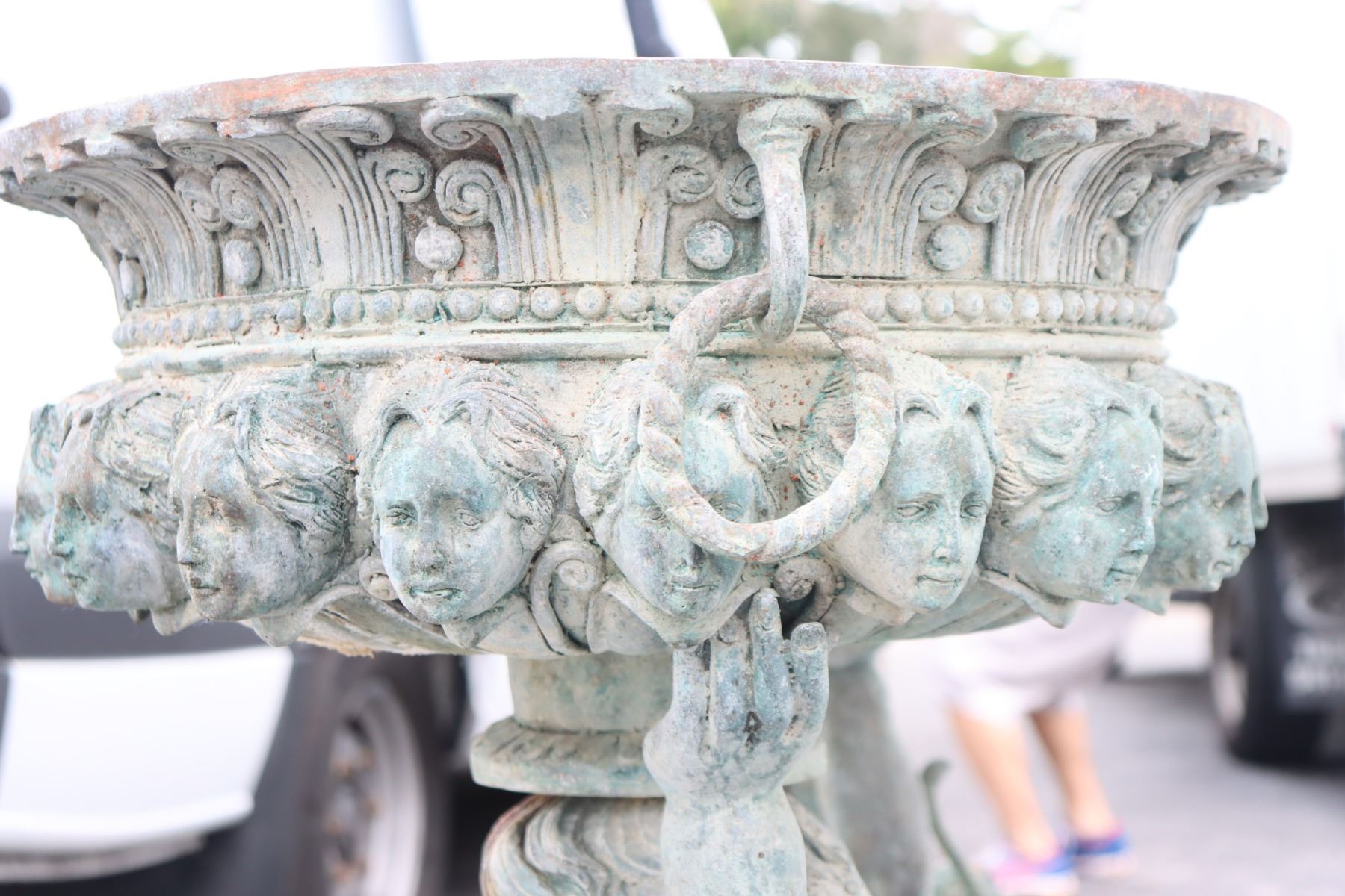 Two angel figures, or putti, holding planters, likely made of concrete. Condition commensurate with age.